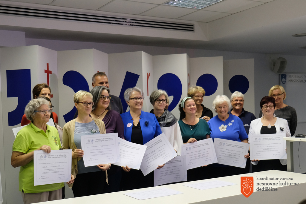 V sredo 4. septembra 2019 je v prostorih Ministrstva za kulturo potekala podelitev Unescovega certifikata nosilcem zadnjih dveh enot – Klekljanje čipk v Sloveniji in Veščina suhozidne gradnje, znanje in tehnike, ki sta bili konec lanskega leta vpisani na Unescov Reprezentativni seznam nesnovne kulturne dediščine človeštva.