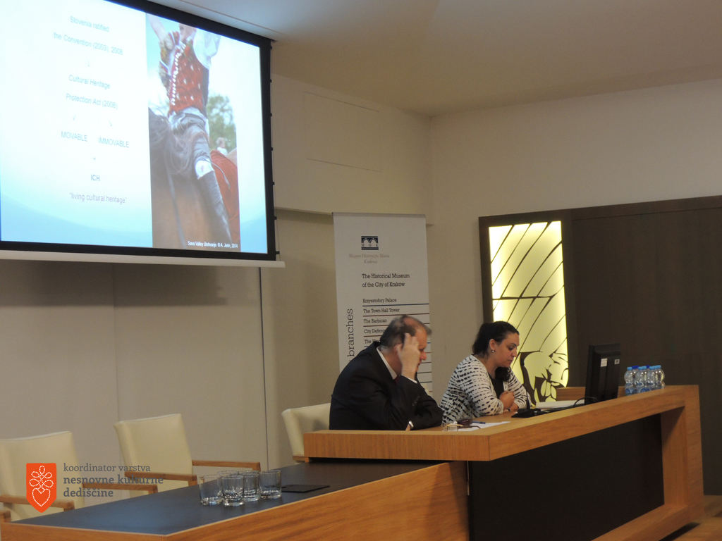Mag. Anja Jerin in dr. Nena Židov sta se kot predstavnici Koordinatorja varstva nesnovne kulturne dediščine med 31. majem in 1. junijem 2016 udeležili mednarodne znanstvene konference Intangible Heritage of the City. Musealisation, Preservation, Education, ki je potekala v Muzeju zgodovine mesta Krakowa v Krakowu na Poljskem. Organizator konference, Muzej zgodovine mesta Krakowa, je na konferenco povabil udeležence iz več držav (Poljska, Hrvaška, Slovenija, Belorusija, Rusija, Slovaška, Ukrajina, Švica).