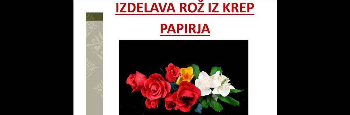V sredo, 17. februarja 2016 bo ob 17:00 v Belokranjskem izročilu, Ulica Staneta Rozmana 6 v Črnomlju, delavnica izdelave rož iz krep papirja, ki ga bo vodila etnologinja Anita Matkovič. Kotizacija 10 € ( material in prigrizek ter napitki med delavnico). Obvezne prijave na telefon 040175711 (Bernarda) oziroma na naslov info@butikbibi.si.
