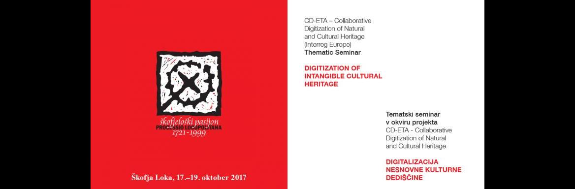 V okviru mednarodnega srečanja projekta CD-ETA (Interreg Europe) vas vljudno vabimo na tematski seminar »Digitalizacija nesnovne kulturne dediščine«, ki bo v sredo, 18. oktobra 2017, z začetkom ob 9.30 v Sokolskem domu (Mestni trg 16-17) v Škofji Loki.