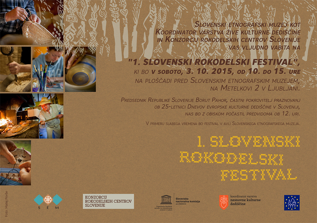 Slovenski etnografski muzej kot Koordinator varstva žive kulturne dediščine in Konzorcij rokodelskih centrov Slovenije organizirata 1. Slovenski rokodelski festival, saj se zavedata pomena rokodelstva za ohranjanje slovenske kulturne dediščine.