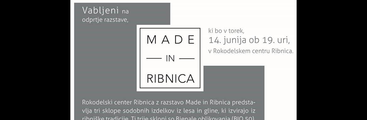Rokodelski center Ribnica z razstavo »Made in Ribnica« predstavlja tri sklope sodobnih izdelkov iz lesa in gline, ki izvirajo iz ribniške tradicije. Ti trije sklopi so Bienale oblikovanja (BIO 50), industrijsko oblikovanje v pletarski in lončarski šoli, ki se izvajata v Rokodelskem centru Ribnica, in lastna blagovna znamka sodobnih lesenih izdelkov »Ribrand«. Vsi trije sklopi se povezujejo v celoto, ki predstavlja sodelovanje med rokodelci (obrtniki) in oblikovalci.