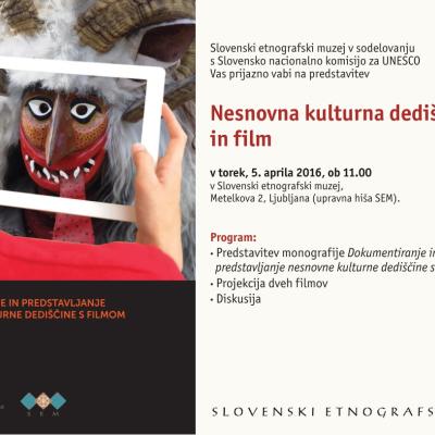 Slovenski etnografski muzej vas v sodelovanju s Slovensko nacionalno komisijo za Unesco vljudno vabi na predstavitev knjige Dokumentiranje in predstavljanje nesnovne kulturne dediščine s filmom, projekcijo dveh filmov in diskusijo. Dogodek s skupnim naslovom Nesnovna kulturna dediščina in film bo potekal v torek 5. aprila 2016 ob 11.00 v Slovenskem ...