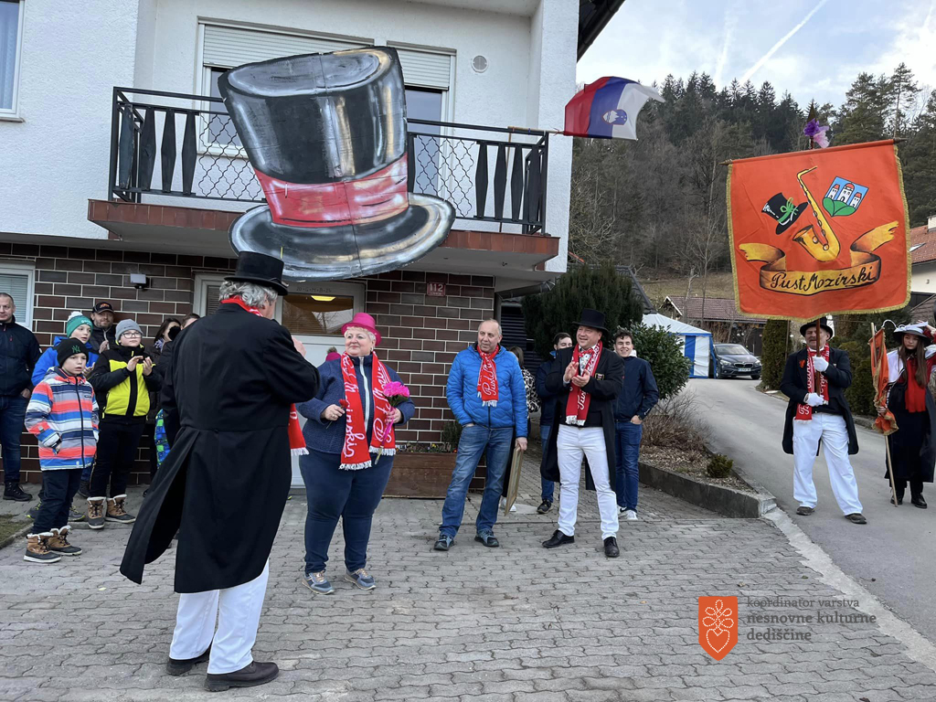 Na debeli četrtek (8. 2. 2024) je Adela Pukl dokumentirala pustno dogajanje v Mozirju. Pust Mozirski je skupno imenovanje za pustno skupino Mozirskih pustnakov in pustno šego, ki v Mozirju poteka vsako leto od debelega četrtka do pepelnice. Značilnost Mozirskih pustnakov je njihovo pustno oblačilo, ki ga sestavljajo črn cilinder, frak in bele hlače. Na debeli četrtek v Mozirju poteka slavnostna podelitev listine o trških pravicah, ki jo prejme v zadnjem letu najbolj zaslužen priseljen krajan Mozirja. Podelitev poteka na slavljenčevem domu v prisotnosti pustnega župana, pustnega predsednika in podpredsednika, tajnika, vodje karnevala, orkestra in njegovega vodje. Letos je listino prejela učiteljica Rozika Kanjir.