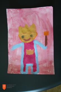 Žana Pintarič, Osnovna šola Belokranjskega odreda Semič, 3. razred, 8 let – Kočevarska pravljica o kači velikanki, ognju in stolpu (tempera).