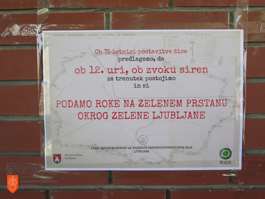 V letošnjem letu je bila na pobudo Zveze združenj borcev za vrednote NOB-ja Ljubljana ob 12. uri ob 75-letnici postavitve žice, izvedena akcija Objemimo Ljubljano, ko so se v znak prijateljstva, sodelovanja in ljubezni do mesta udeleženci pohoda ob zvoku sirene prijeli za roke in z živim obročem obdali Ljubljano.