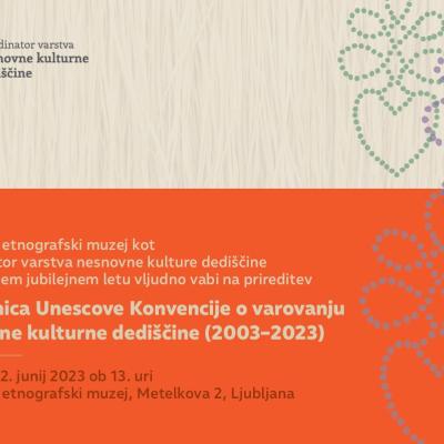 V četrtek 22. junija 2023 je SEM s celodnevnim dogajanjem na muzejski ploščadi obeležil dva jubileja – 100 let muzeja in 20-letnico Unescove Konvencije o varovanju nesnovne kulturne dediščine. Slednji sta bila posvečena odprtje priložnostne panojske razstave Nesnovna kulturna dediščine Slovenije: Ob 20-letnici Unescove Konvencije avtoric Anje Jerin in Nene ...
